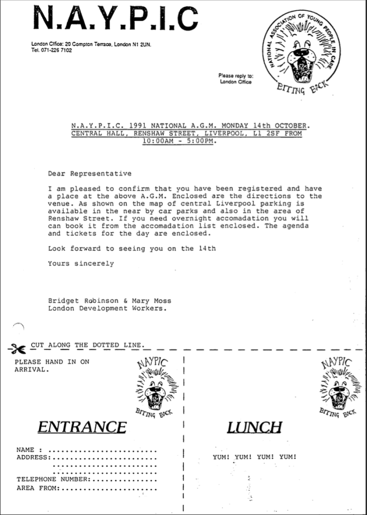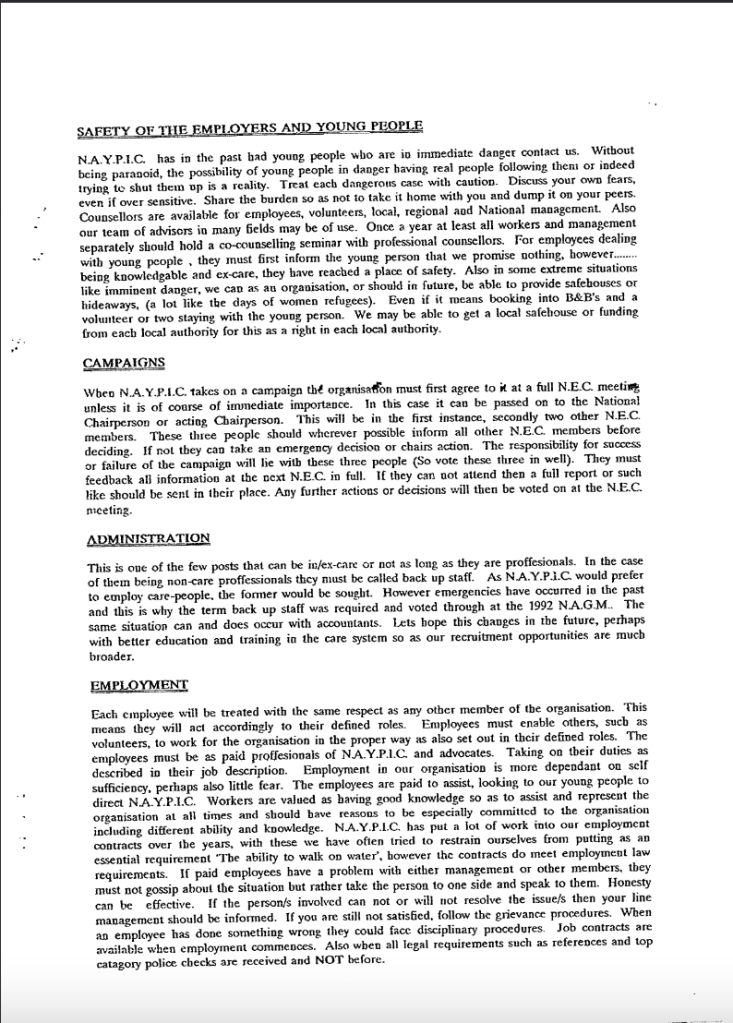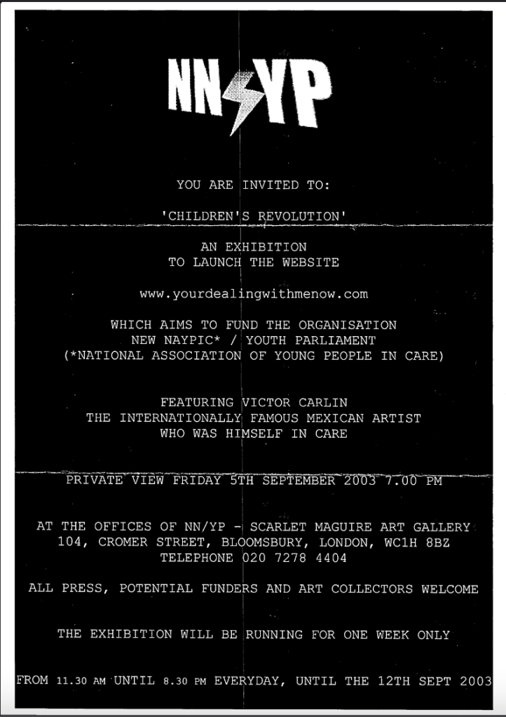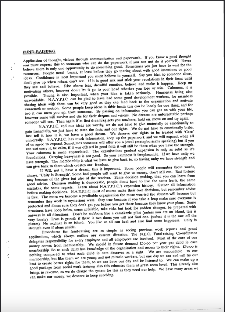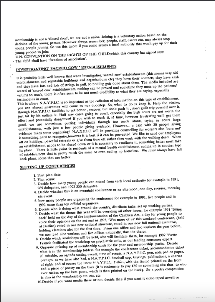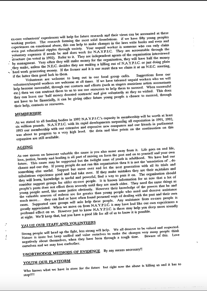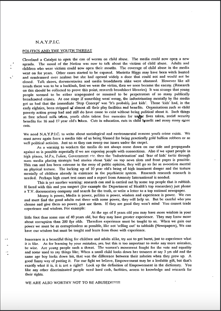 1993 Implementation of New NAYPIC / Youth Parliament. Expansion from young people in care to all children in the UK 12 million children, hence a Youth Parliament, led by victims and survivors in care. The day had 1100 young people in care attend at Stucley Street, Camden Town