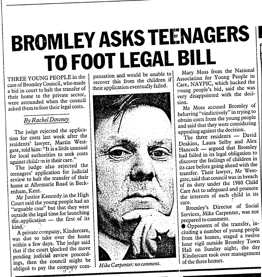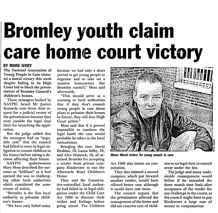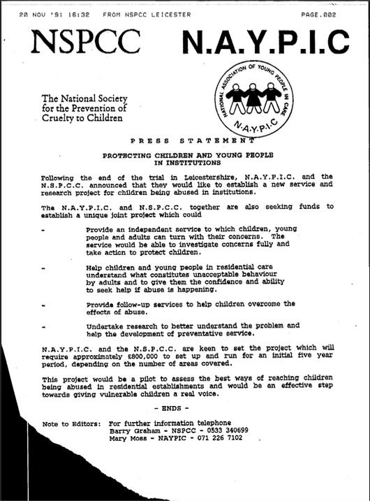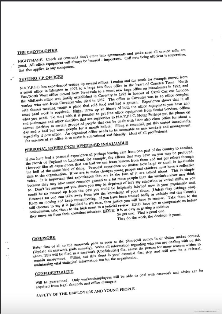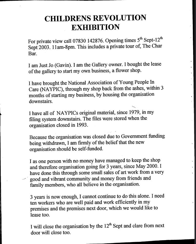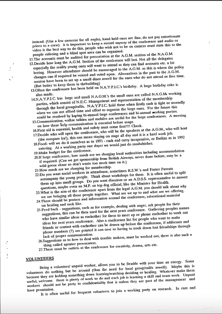 1993 Implementation of New NAYPIC / Youth Parliament. Expansion from young people in care to all children in the UK 12 million children, hence a Youth Parliament, led by victims and survivors in care. The day had 1100 young people in care attend at Stucley Street, Camden Town