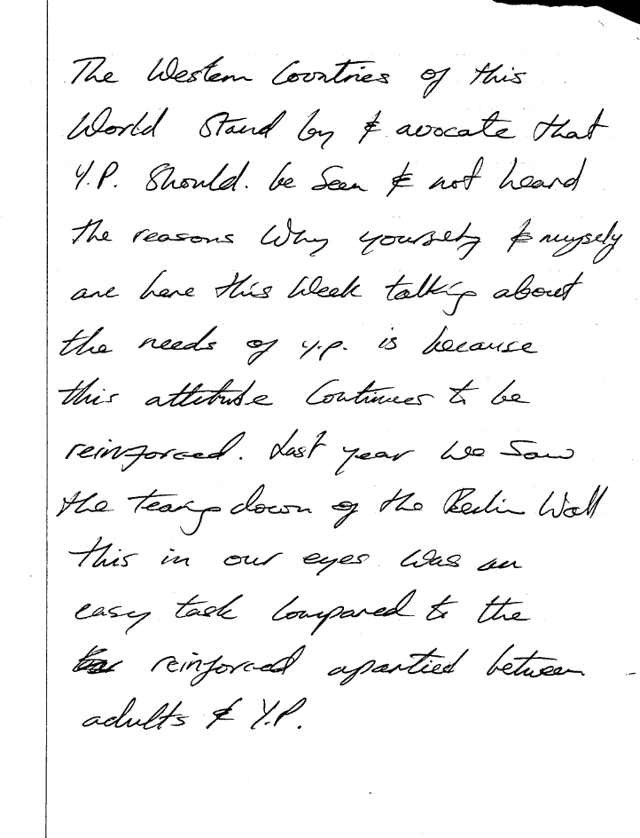 Yet despite that, the fundamental idea of youth parliament’s began to be duplicated internationally, such was the concept envoked, and the demand for young people to be heard had now caught fire.