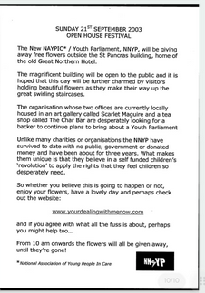 1999 NEW NAYPIC / Youth Parliament had premises in Camden again, in Bloomsbury London.