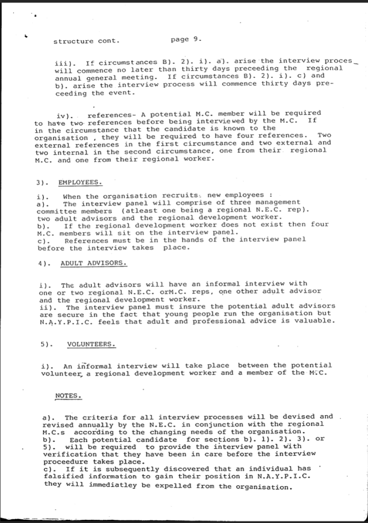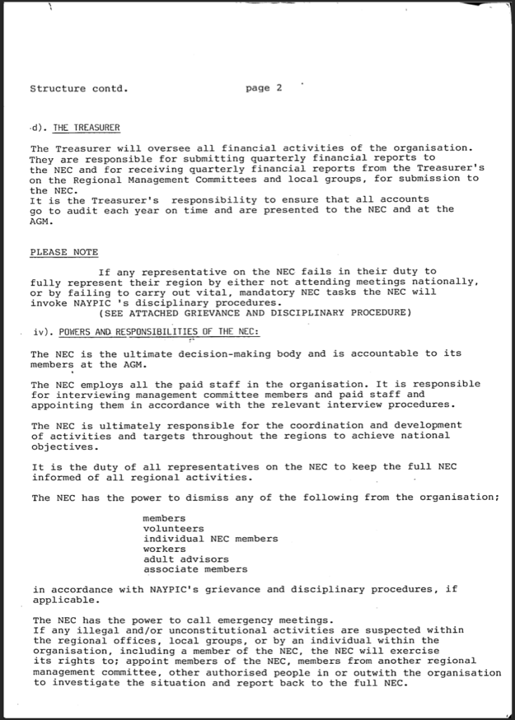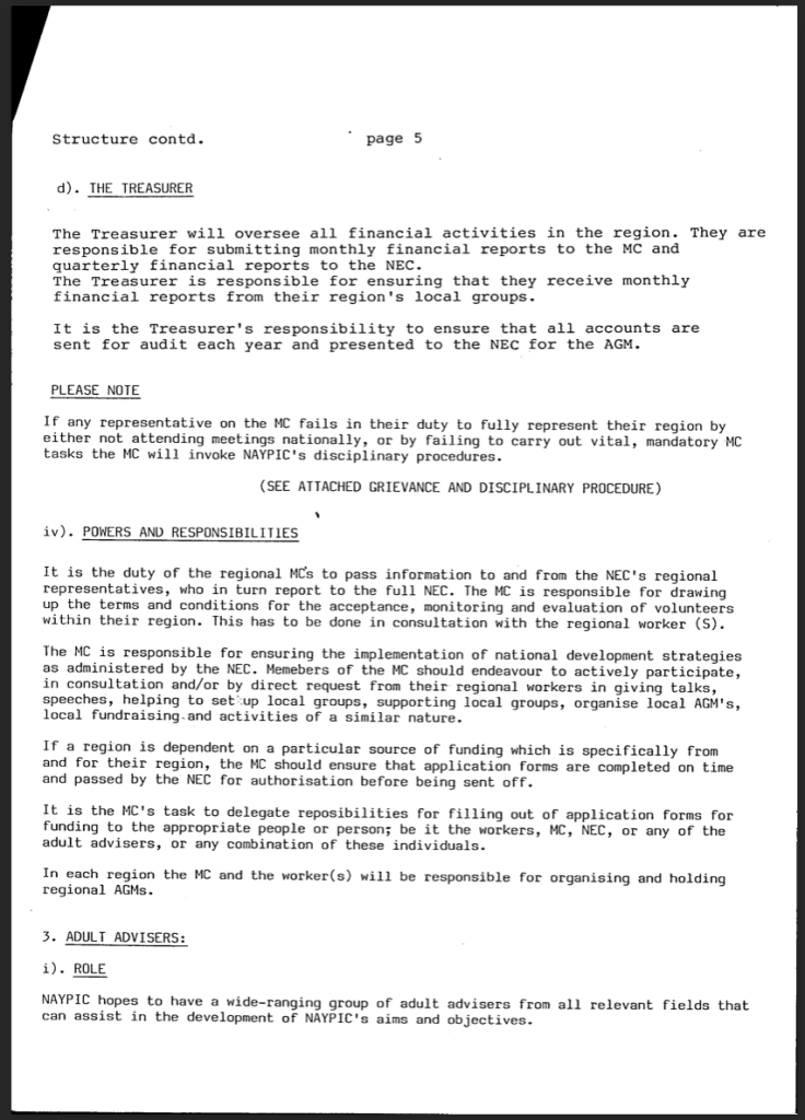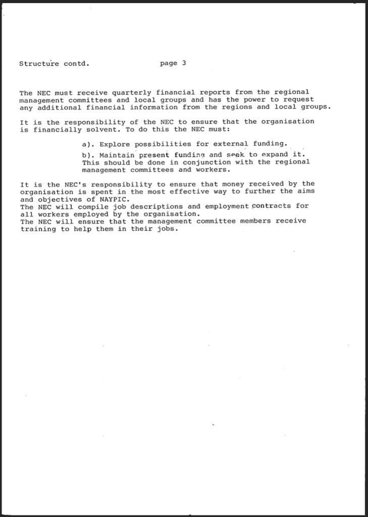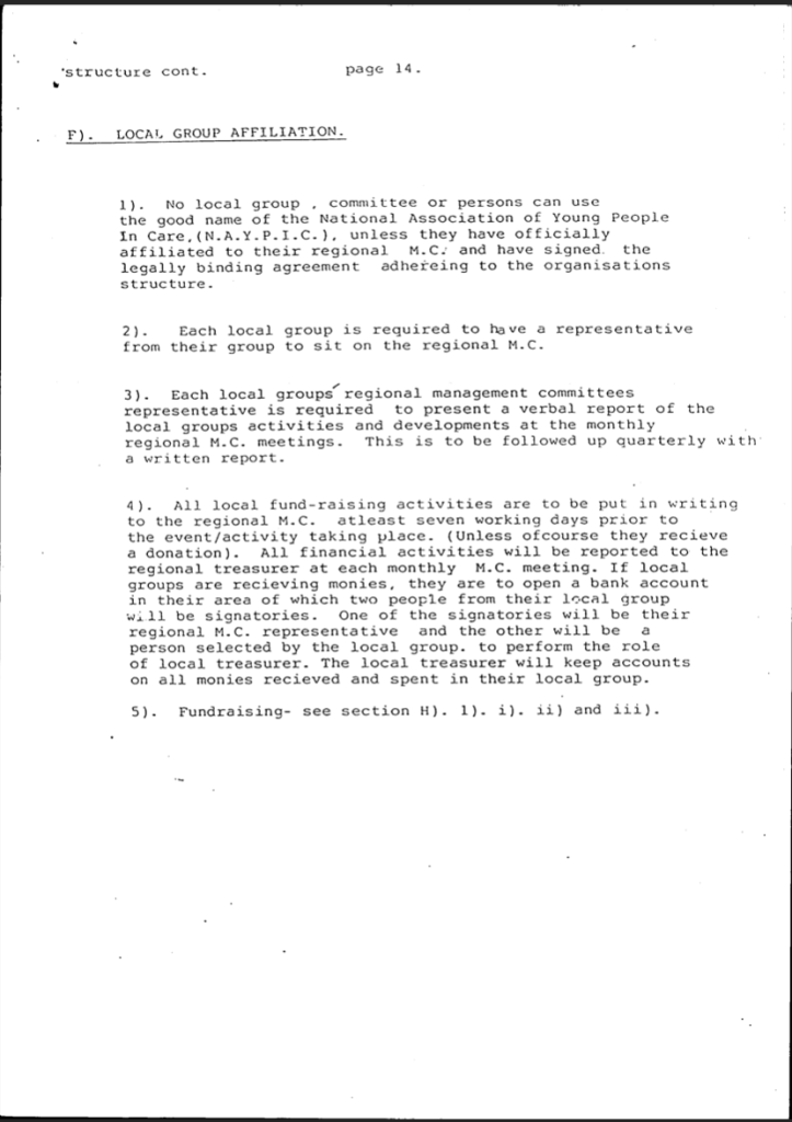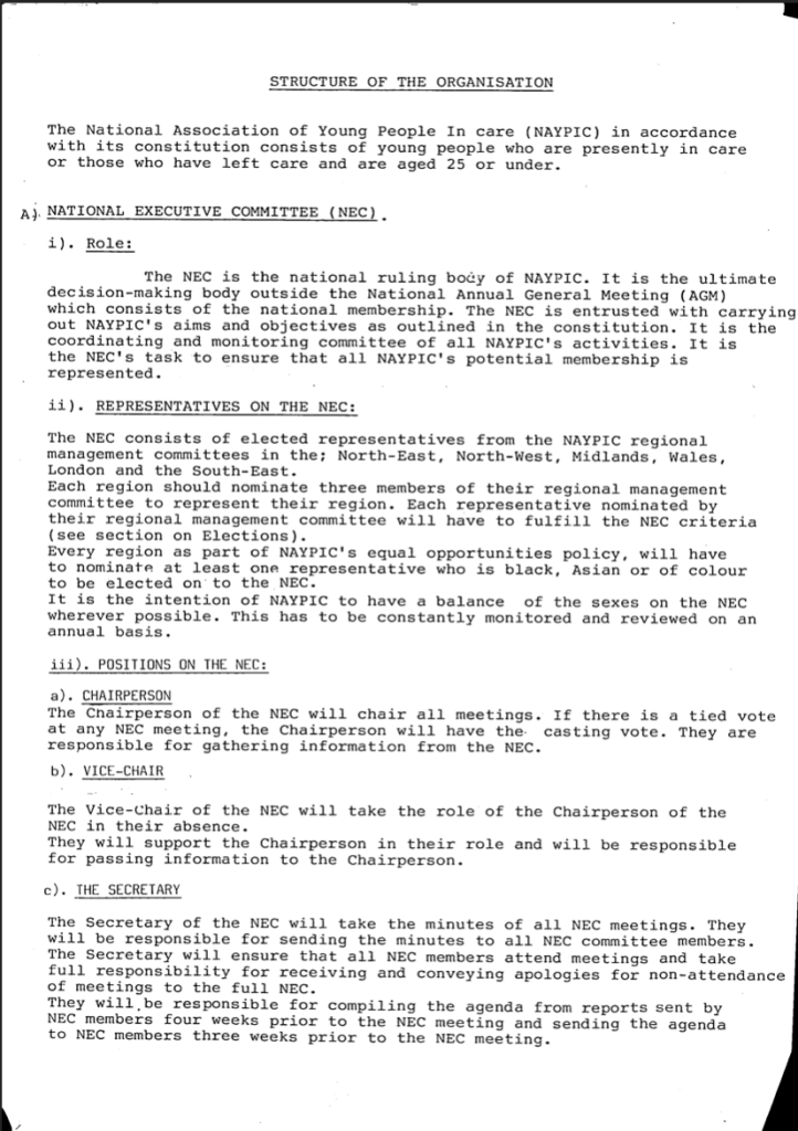National Association of Young People In Care NAYPIC constitution. From the archive 1979-Now